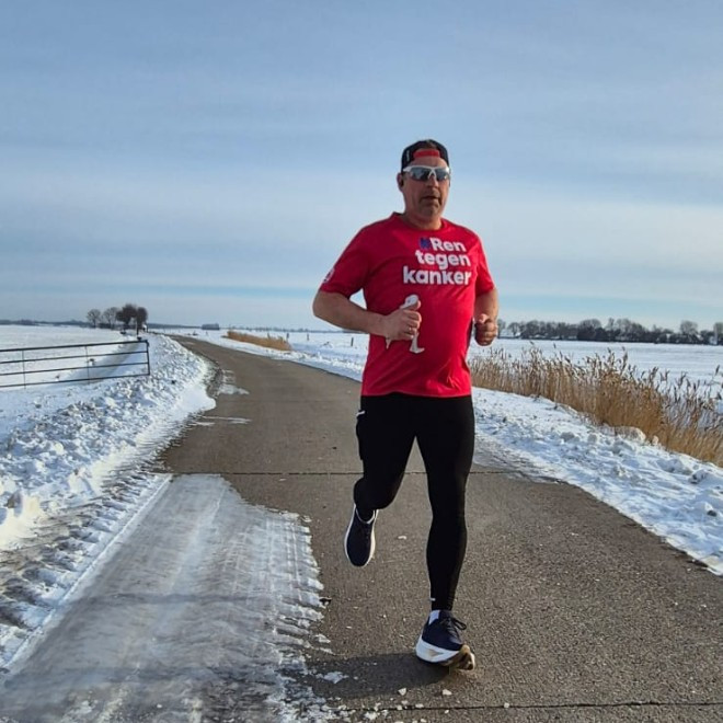 Ren tegen kanker tijdens Enschede Marathon 2026 op 12 april 2026.