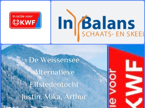 Wij Justin, Mika en Arthur komen in actie. Wij schaatsen daarom de Alternatieve Elfstedentocht op de Weissensee om geld op te halen voor kankeronderzoek. Geld dat heel hard nodig is, want maar liefst 1 op de 2 mensen in Nederland krijgt de diagnose kanker. Sponsor mij en help KWF met de financiering van belangrijk onderzoek naar kanker. Namens ons en KWF: dankjewel!