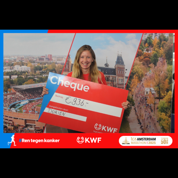 Ik doe mee om geld op te halen voor kankeronderzoek. Geld dat heel hard nodig is, want maar liefst 1 op de 2 mensen in Nederland krijgt de diagnose kanker. Sponsor mij en help KWF met de financiering van belangrijk onderzoek naar kanker. Namens mij en KWF: dankjewel!