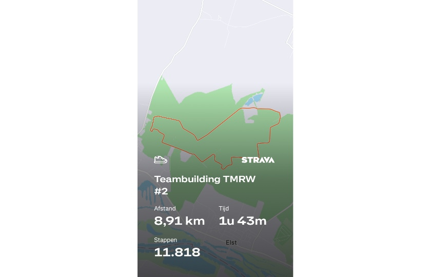 De eerste teambuilding (7,5 km) is een feit! We zijn al op de helft 😅