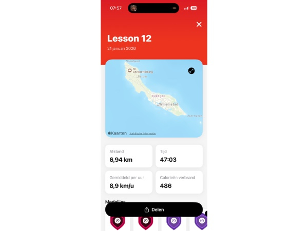 Januari zijn we lekker op een zonvakantie gegaan naar Curacao en ook daar heb ik de trainingen door kunnen zetten. We hadden een prachtige sportschool bij ons hotel. Geholpen door een jetlag was ik elke dag vroeg wakker en ging ik rond 7.00 uur lopend langs het strand richting sportschool. Ik ben gewend om buiten hard te lopen, maar door de hogere temperaturen en omdat ik de wegen niet goed ken koos ik ervoor de trainingen op de loopband te doen. Lekker in de airco de meters maken. Wel wat saai, maar altijd met een fijn gevoel als het er weer op zat.