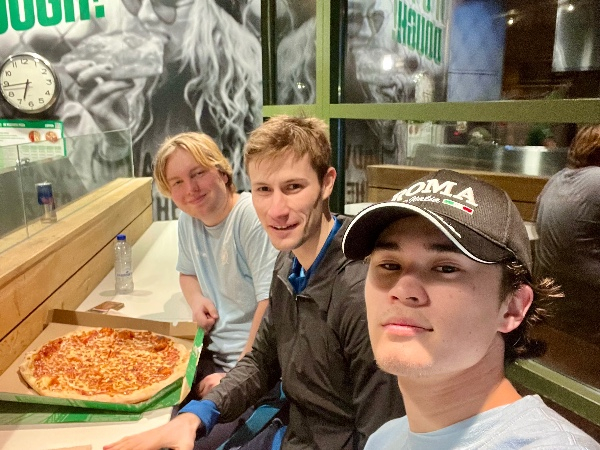 Na afloop van de oefen-duinloop natuurlijk een welverdiende pizza