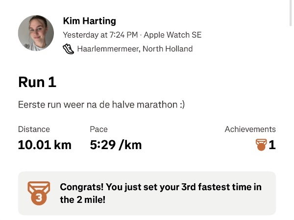 Ook de eerste run voor een betere tijd zit in de benen. Ik besloot 10km te gaan rennen, met een tempo van 5:30. Dit was gelukt :)