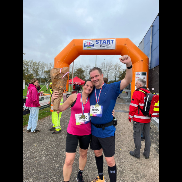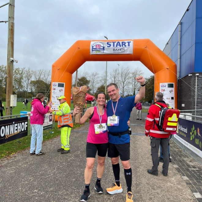 Wat een geweldige ervaring was het! Op 12 oktober stonden we aan de start van de 15 kilometer van Wassenaar. De route was echt prachtig. Edwin en ik hebben de hele afstand schouder aan schouder gelopen. We moesten af en toe wel even opletten, Edwin's hartslag was aan de hoge kant! Bij mij schoot de hartslag vooral de lucht in bij de start, puur door het enthousiasme en toen we mijn ouders en kinderen langs de lijn zagen. Dat enthousiasme van alle supporters was sowieso fantastisch! Voor de zekerheid heb ik toch nog maar mijn vertrouwde, oude schoenen aangetrokken. 😉 Er ligt nog een lange weg voor ons, maar deze mijlpaal hebben we in ieder geval alvast binnen!