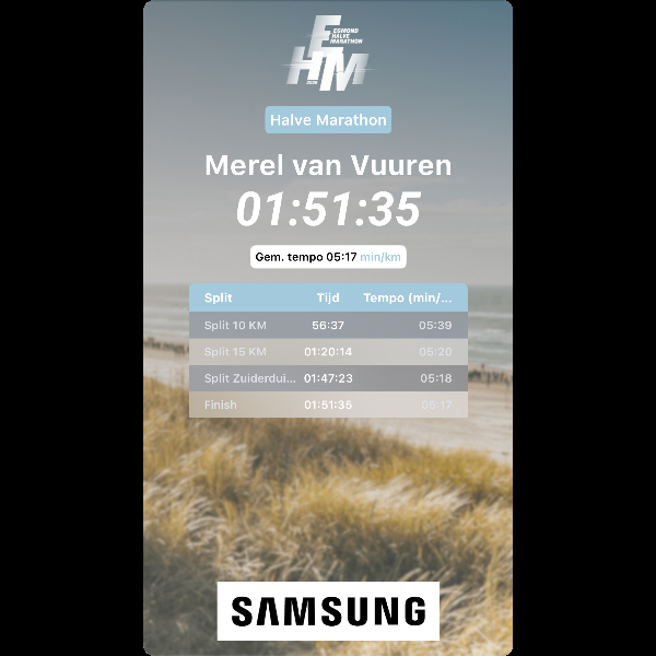 Vandaag heb ik de Halve Marathon van Egmond gelopen in een tijd van 1 uur en 51 minuten. Een prachtig en pittig parcours, en ontzettend blij met dit resultaat!