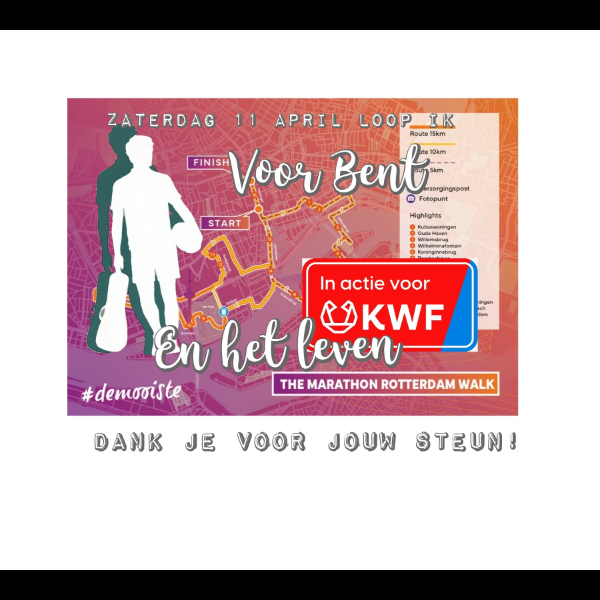 Met mijn zoon Bent in mijn hart wandel ik tegen kanker tijdens The Marathon Rotterdam Walk 2026.