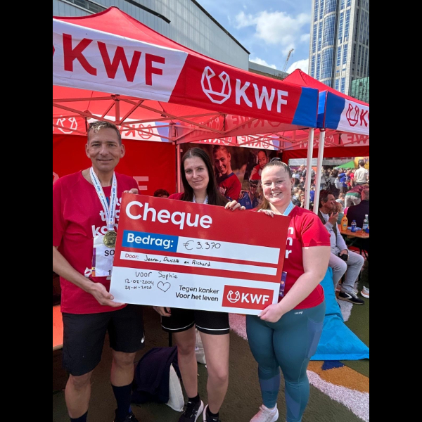Ik zet elke stap in deze 42 kilometers voor het Kanker Bestrijdings Fonds, een organisatie die zich onvermoeibaar inzet voor onderzoek, preventie en betere behandelingen tegen kanker. Want nog steeds krijgt 1 op de 3 mensen in Nederland hiermee te maken. Dat moet veranderen – en daar wil ik aan bijdragen.