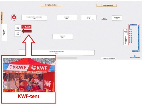 Kom na de finish gezellig langs bij de KWF tent op het Schouwburgplein....